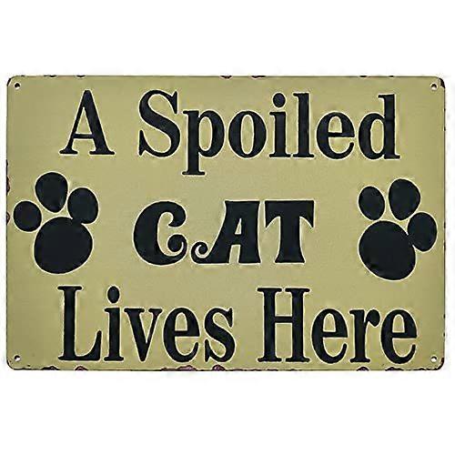 A Spoiled Cat Lives Here Vintage Metal Tin Signs Novelty Cat Sign Coffee Bar Pub Farmhouse Country Home Decor for Cat Lover Size: 8 x 12 Inches