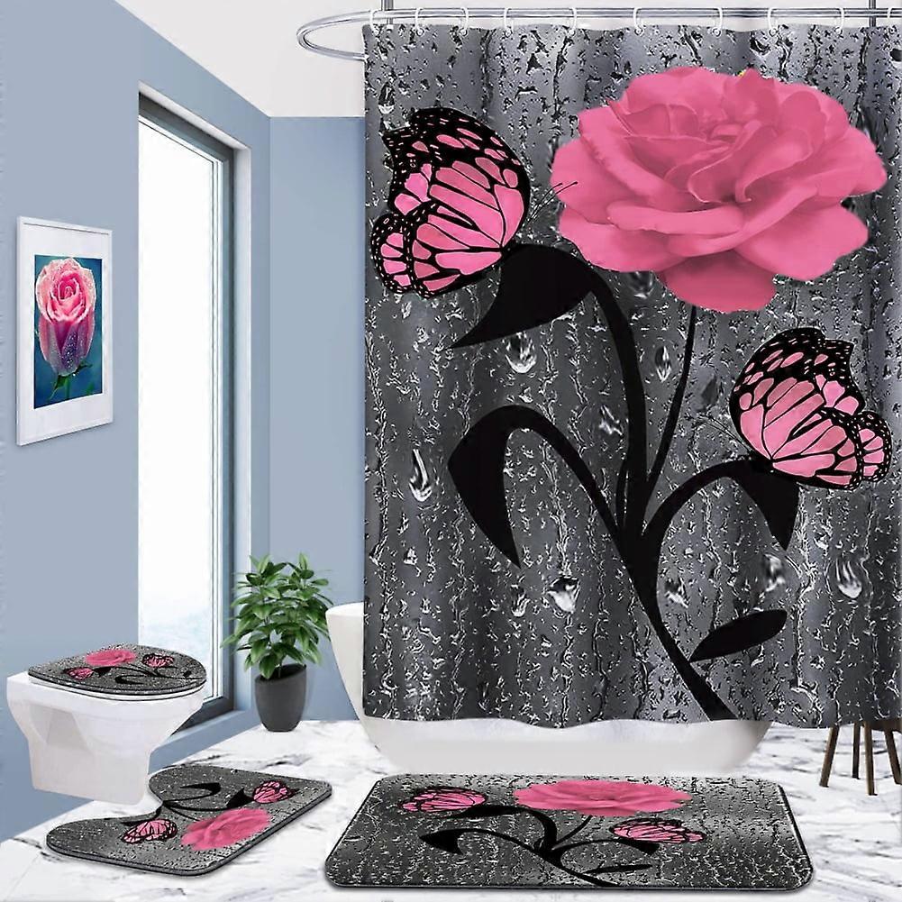 Farmhouse Shower Curtain Set 4pcs with Rugs & Accessories, Farm Floral Bathroom Decor, Compatible with Country Wooden Theme, 12 Hooks Included