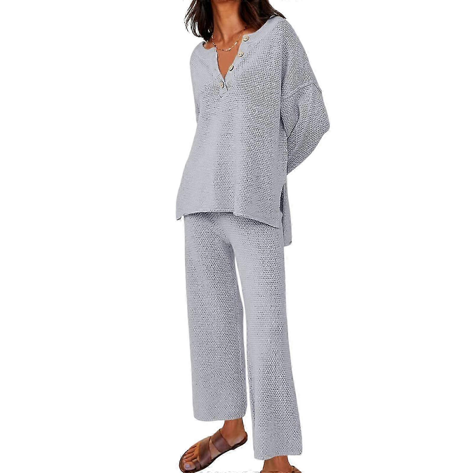 Features:Stylish and Comfortable: These womenand 39 s 2-piece knit outfits are designed to provide both style and comfort. The soft and cozy materials ensure a comfortable fit, while the trendy design adds a touch of fashion to any look.Versatile Loungewear: This womenand 39 s loungewear sweater set is perfect for both lounging at home and running errands. The relaxed fit and cozy fabric make it ideal for casual wear, while the matching set adds a stylish element to your outfit.Fall Sweatsuit Perfection: Stay cozy and fashionable with these womenand 39 s fall sweatsuit matching lounge sets. The warm and soft material is perfect for the colder months, while the matching top and bottom create a put-together look effortlessly.Effortless Style: Elevate your wardrobe with these womenand 39 s pullover sweater sets. The versatile tops and high-waisted pants can be mixed and matched with other pieces for endless outfit possibilities. Perfect for both casual and formal occasions.Lounge in Style: These womenand 39 s sweater lounge sets are perfect for relaxing at home or heading out for a casual gathering. The cozy sweater material keeps you warm and comfortable, while the stylish design ensures you look effortlessly chic. Specification: Material: Terylene Size,Bust(cm),Sleeve(cm),Waist(cm),Pant Length(cm) S,108,45,70-80,100 M,112,46,74-84,101 L,116,47,78-88,102 XL,120,48,82-92,103 2XL,124,49,86-96,104 Note: Due to the light and screen setting difference, the item's color may be slightly different from the pictures. Please allow slight dimension difference due to different manual measurement.