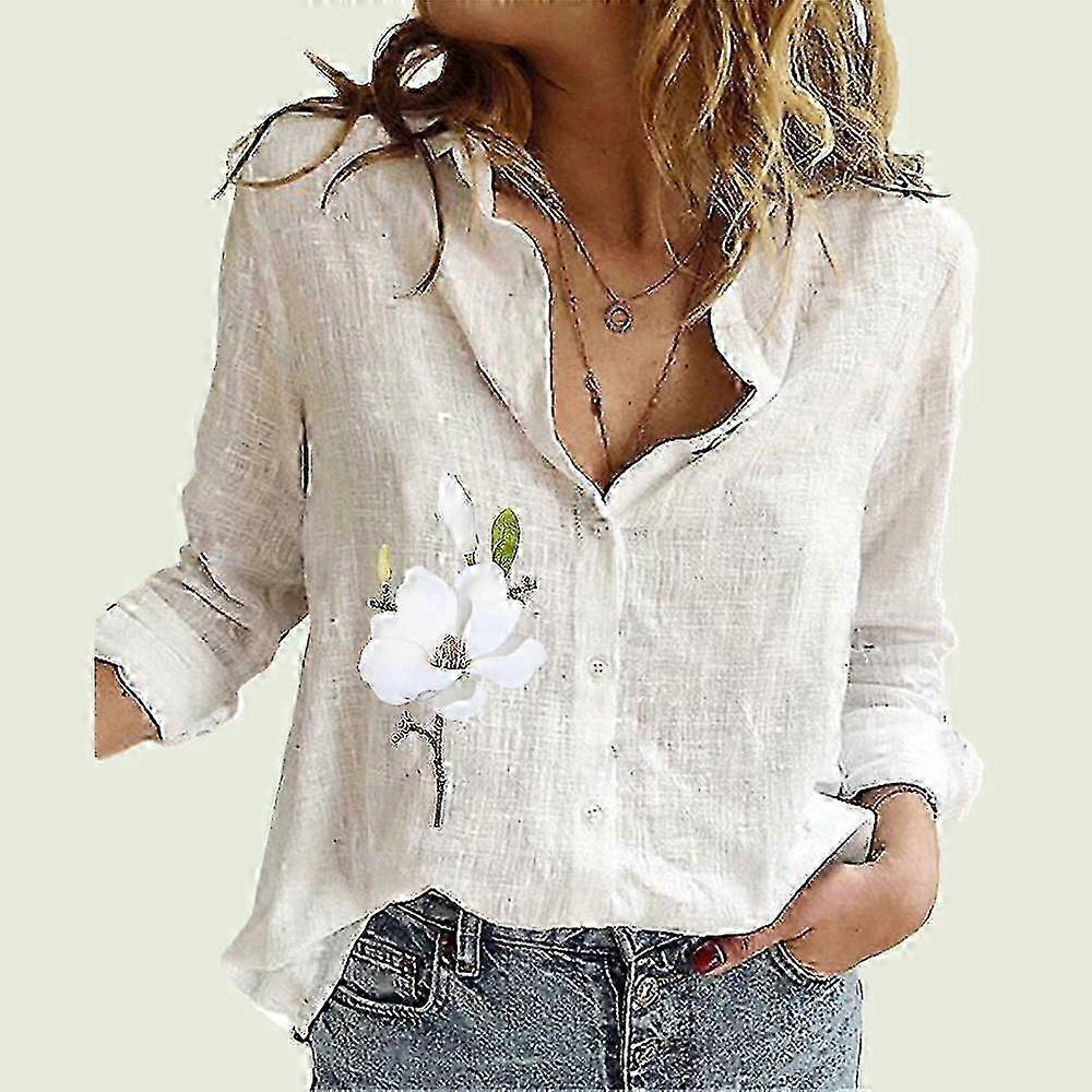 w Fashion Floral Print Shirt for Women Summer&autumn Casual Button-down Linen Top Ladies Long Sleeve Blouses