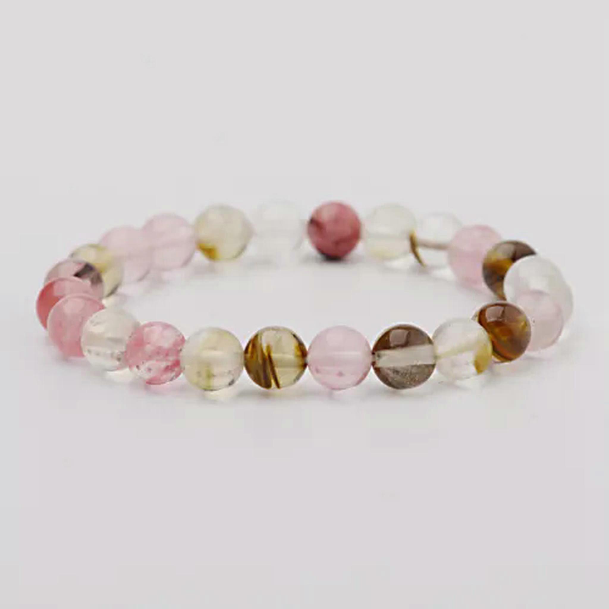 RSAMD Natural Stone Bead Bracelet Elastic Stretch Bangle 6-10MM Round Bead Multi-Style-Watermelon Skin Quartz-8MM