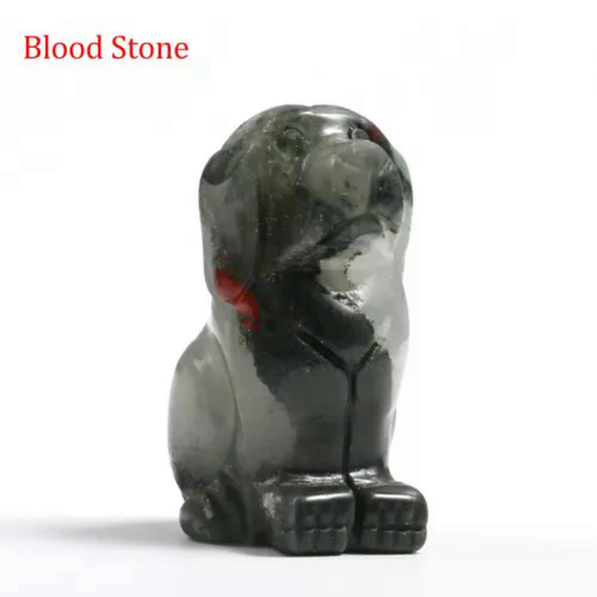 RSAMD Hand Carved Dog 1.5" Natural Crystal Cute Statue Stones Animal Figurines Healing-1PC (Random Pick)-Blood Stone