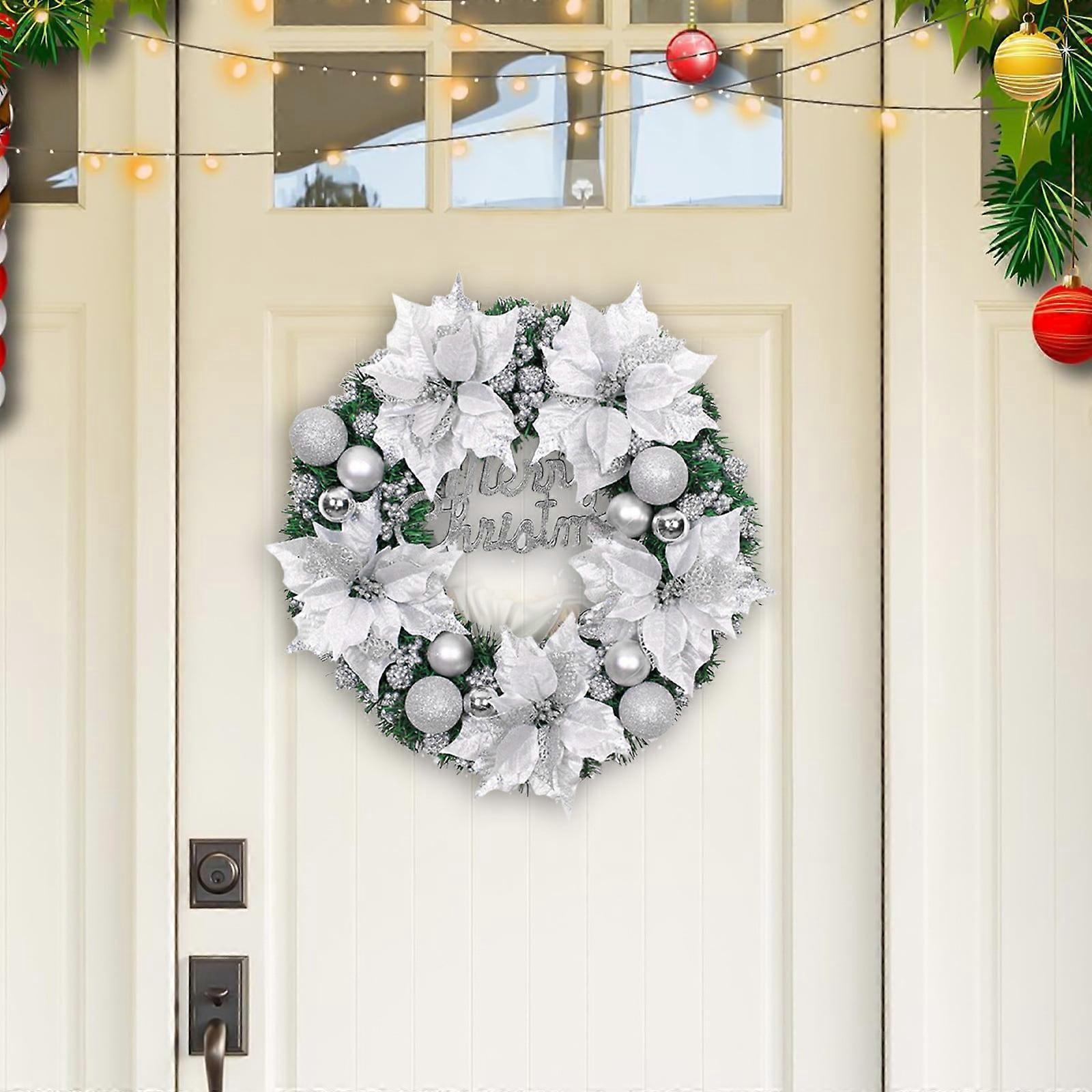 Christmas Wreath with Balls & Plastic Flowers, Holiday Garland for Winter Home Decor, Front Door Xmas Decorations