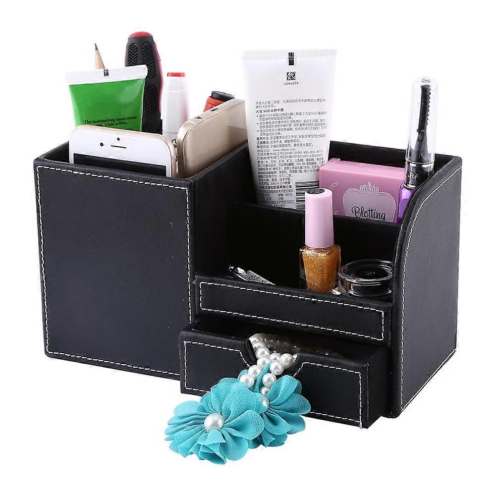 Wooden Leather Desk Caddy - Multifunction Organizer for Pens, Pencils, Paper, Highlighters, etc. Compatible with office supplies