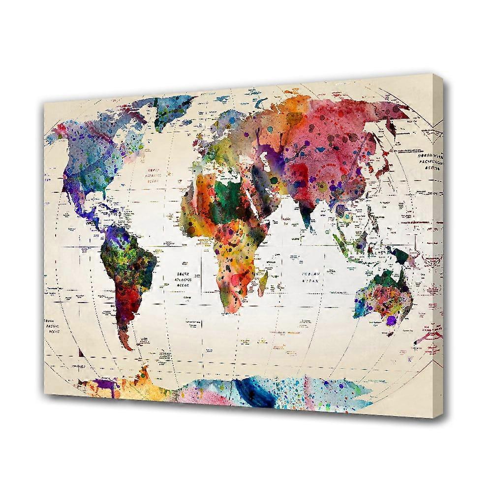 Watercolor World Map Canvas Poster Bedroom Decor Sports Landscape Office Room Decor Gift,Frame-style,12x18inch(30x45cm)