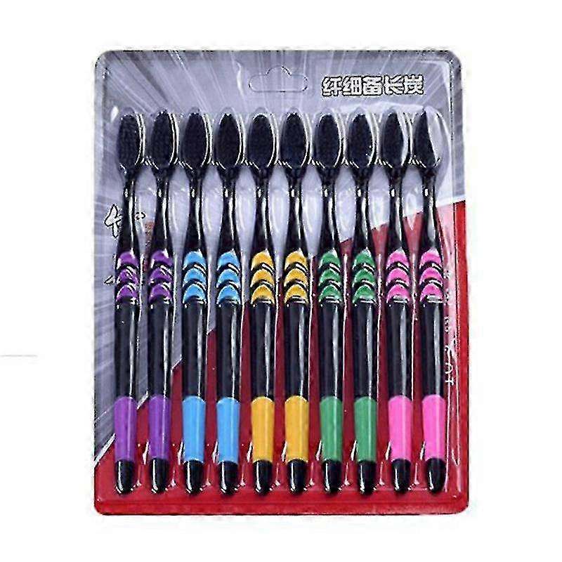 w 10 Pieces Bamboo Toothbrush Soft Tooth Brush Charcoal Adults Toothbrushes