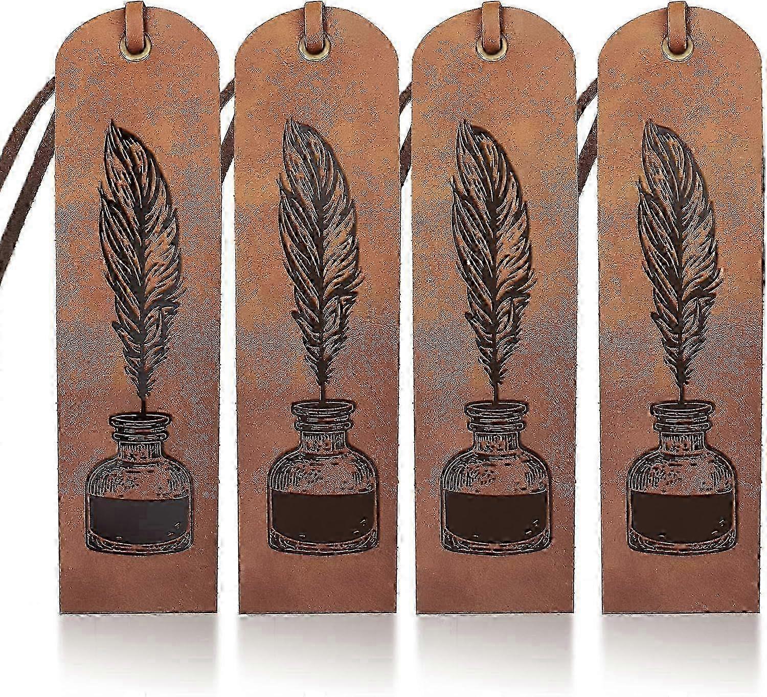 w 4Pcs Feather Pen Ink Leather Bookmark Vintage Handmade Ink Bottle Leather Book Page Markers for Men Women 27inch Classic Bookmark for Book Readi