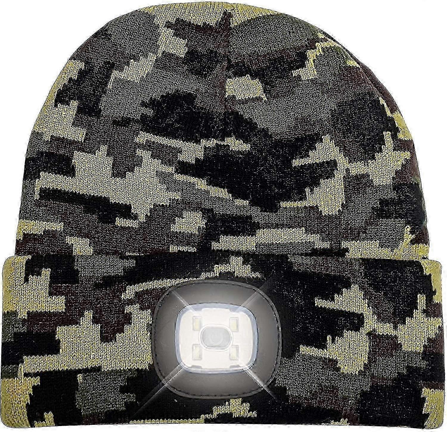 w Lightweight And Warm Knit Hat With Hat For Winter Safety, Unisex Led Light Up Hat Suitable For Most Men, Women And Children Green Camouflage
