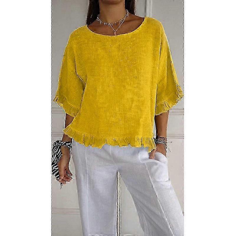 Solid Color Blouse for Women Cotton Linen Summer Short Sleeve Casual Top