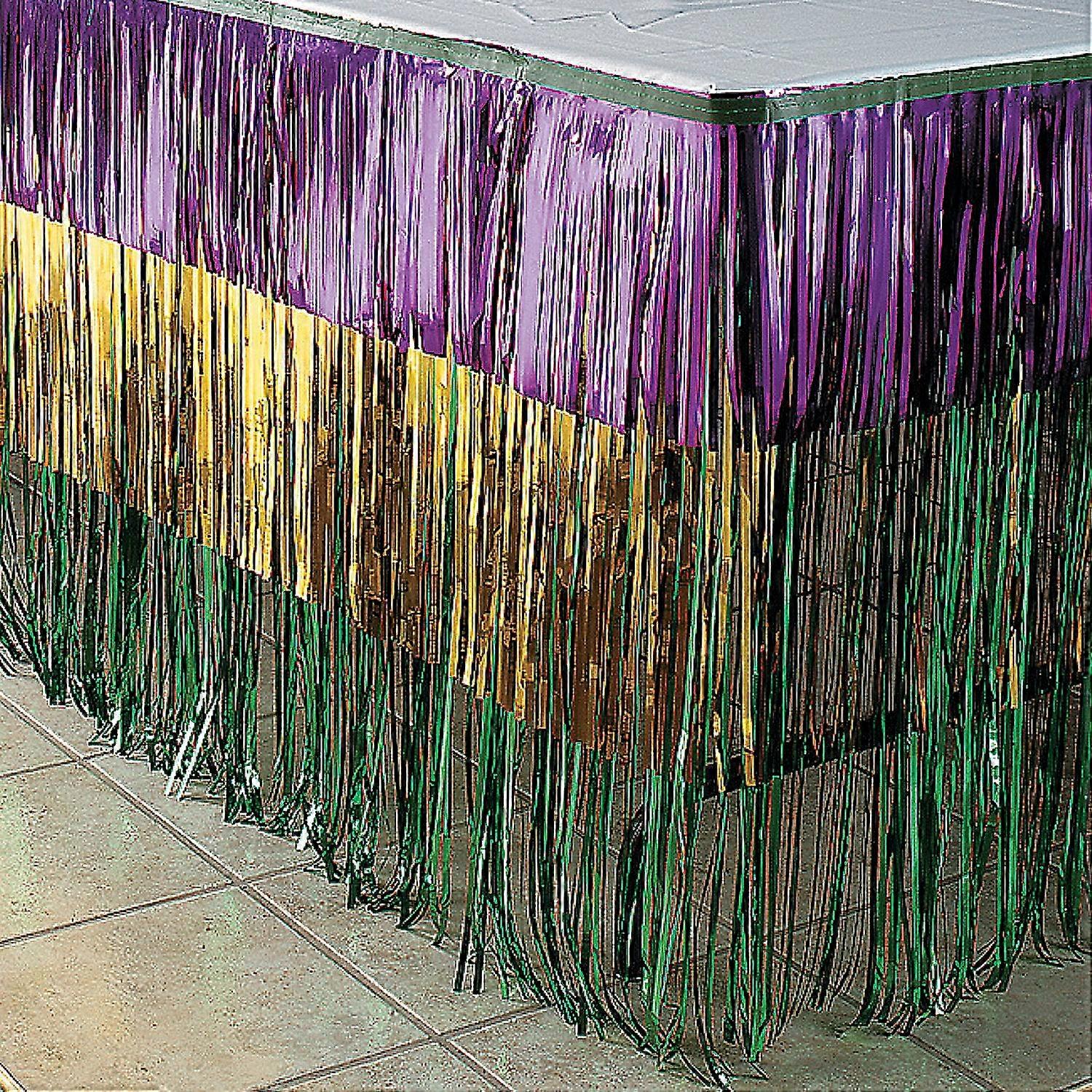 Tiered Mardi Gras Metallic Fringe Plastic Table Skirt, Party Supplies, 1 Piece