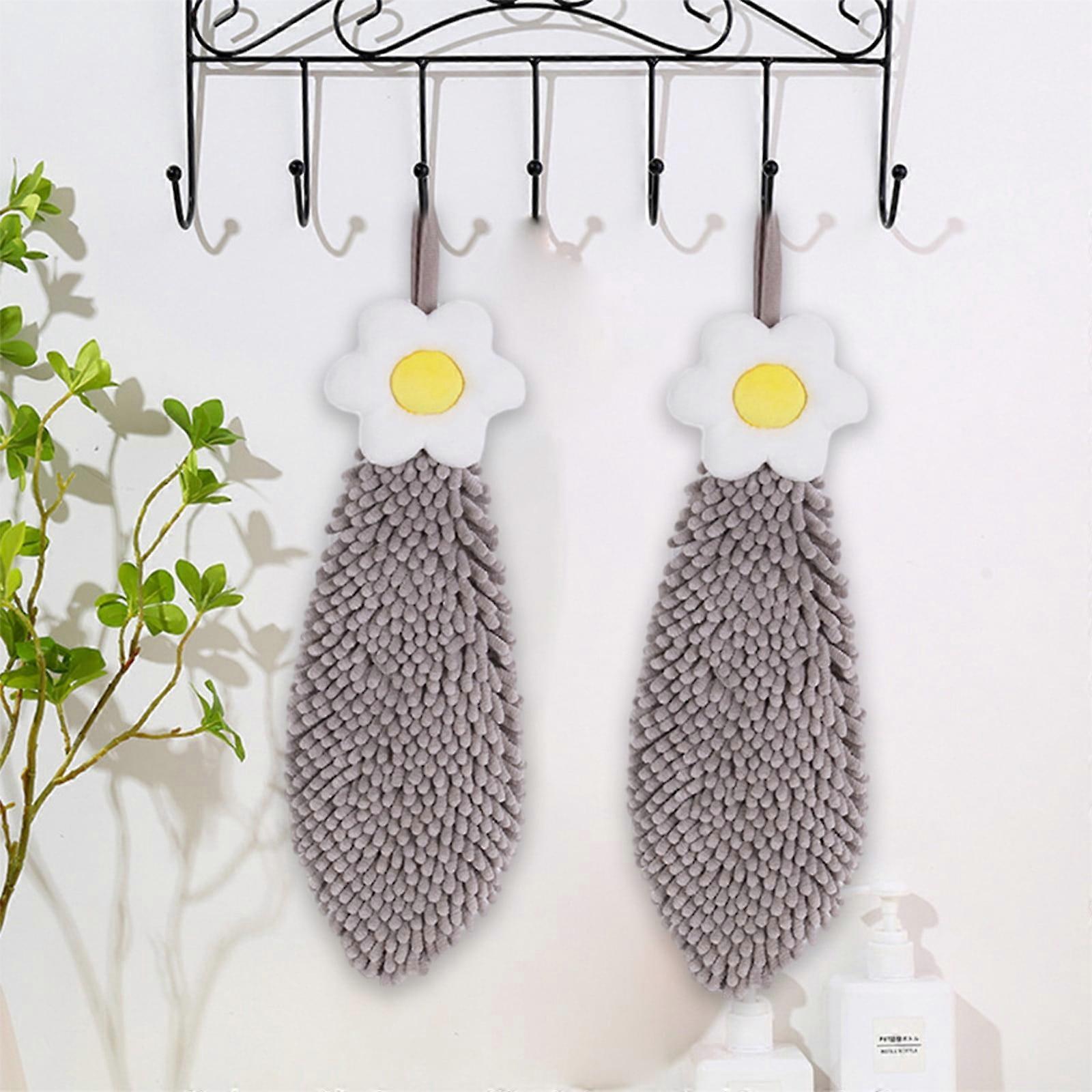 VALSEEL Flowers Chenille Hand Towel Cute Hanging Hand Wipe Ball Hand Towel Thickened Absorbent Hangable Multifunctional Hand Towel
