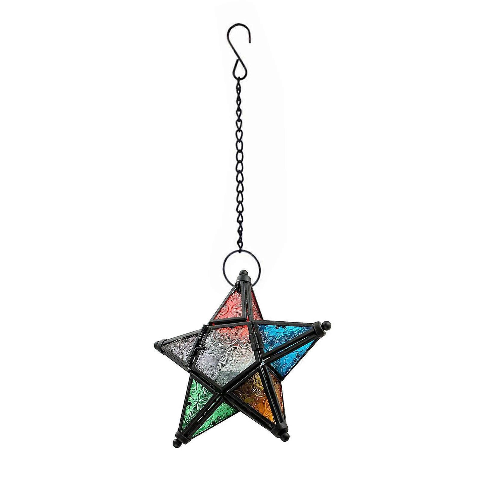 European Style Colored Embossed Glass Five Pointed Star Candlestick Hanging Wind Lamp Aromatherapy Candle Holder Home Decoration Features: These star glass are handcrafted in rich and lustrous colors that are eye-catching and instantly ambience to any room. Each is hand assembled by skilled artisans who often pass their skills down from generation to generation. Dimensions: 19.5 x 19.5 x 5.5cm Artisanal Metalwork and Glass handmade in china Additional Information: Please note that this product requires a candle as a light source. Please be aware of the flame of the candle when lighting this product. Keep from small children and . Product Description: Material: metal + glass Dimensions: as picture shown Color: as picture shown Package Included: 1 X candle pendant Notice : Due to different monitors or different color reflections such as lighting, background, etc., the picture may not reflect the actual color of the item. Miayilima European Style Colored Embossed Glass Five Pointed Star Candlestick Hanging Wind Lamp Aromatherapy Candle Holder Home Decoration Ready to disassemble and use, easy to clean. High quality materials, use with confidence. A portable tableware tool that is perfect for family gatherings, outdoor barbecues, event parties, school graduation, and other occasions. Having it will not take up space, but it can also bring a lot of convenience to life and bring more fun.