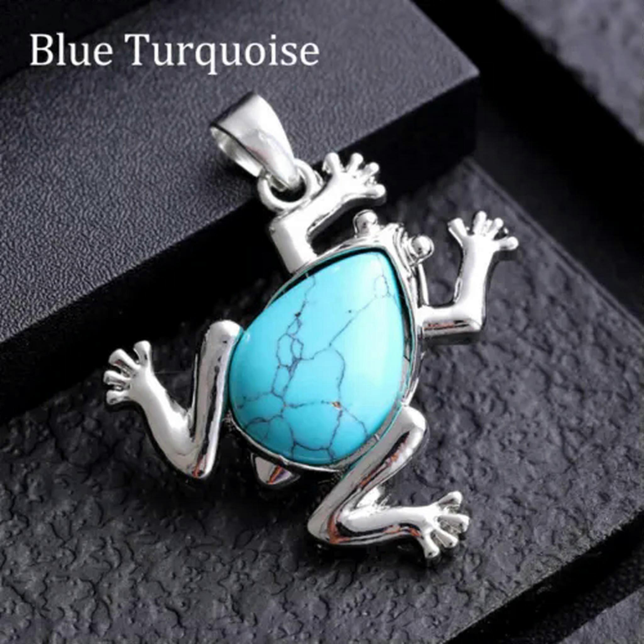 RSAMD Mini Chakra Crystal Frog Pendants Bead Quartz Stone Energy Amulet Reiki Healing-Blue Turquoise-1PC (Random Pick)