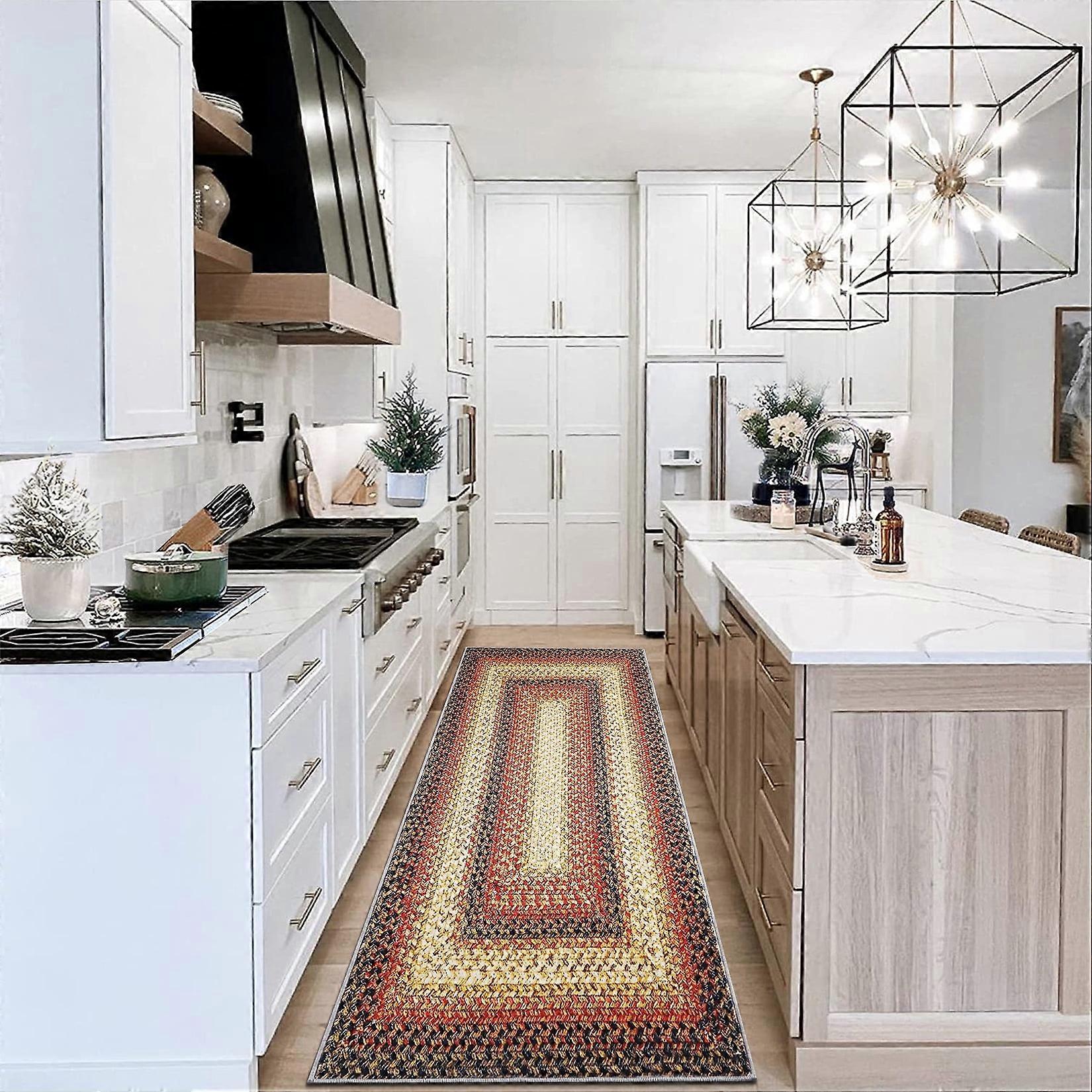 Haperlare Runner Rug Living Room Washable Rug Braided Print Boho Accent Floor Covers Modern Geometric Area Carpet for Bedroom Kirtchen, 2' x 8' Red