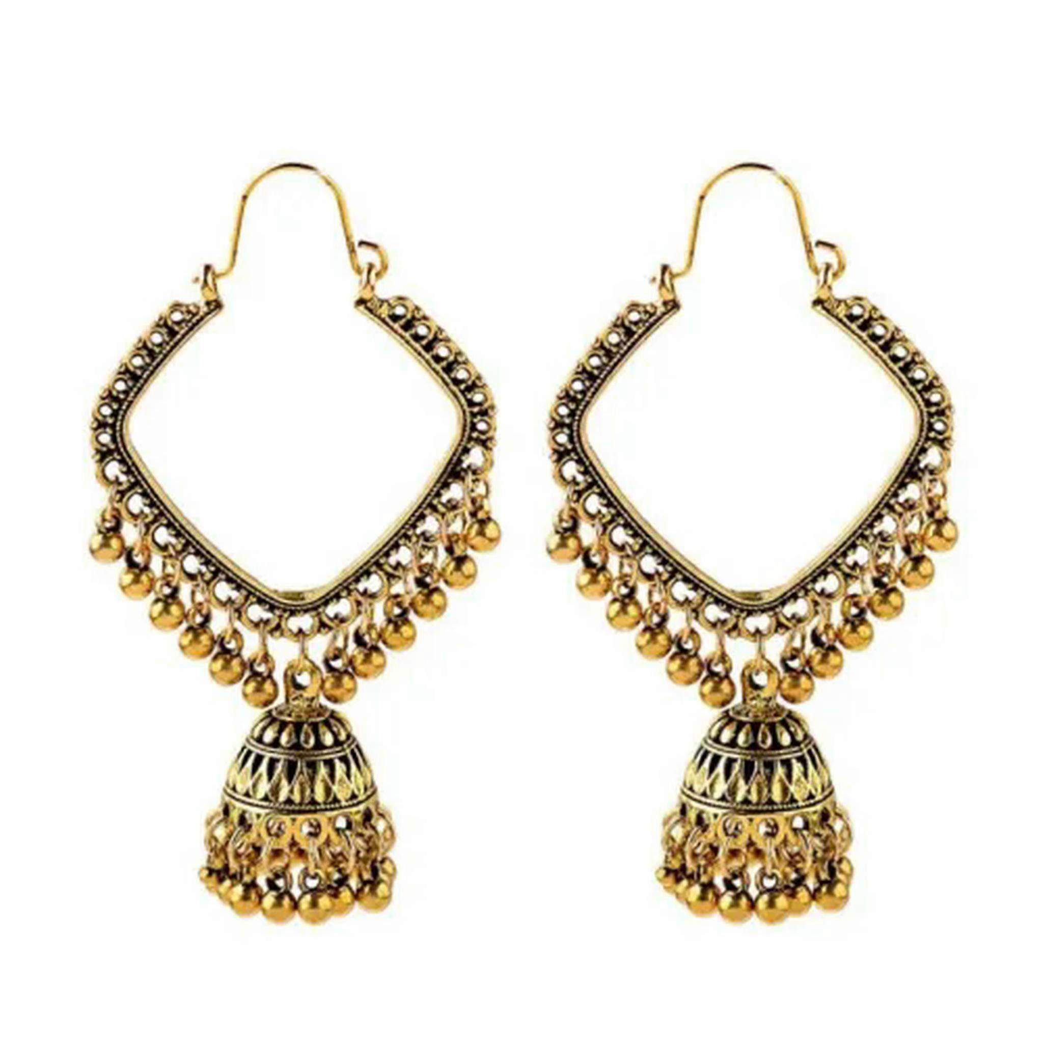 RSAMD Egypt Vintage Boho Indian Jhumka Jhumki Earrings Tibetan Jewelry Gift for Women-B Gold