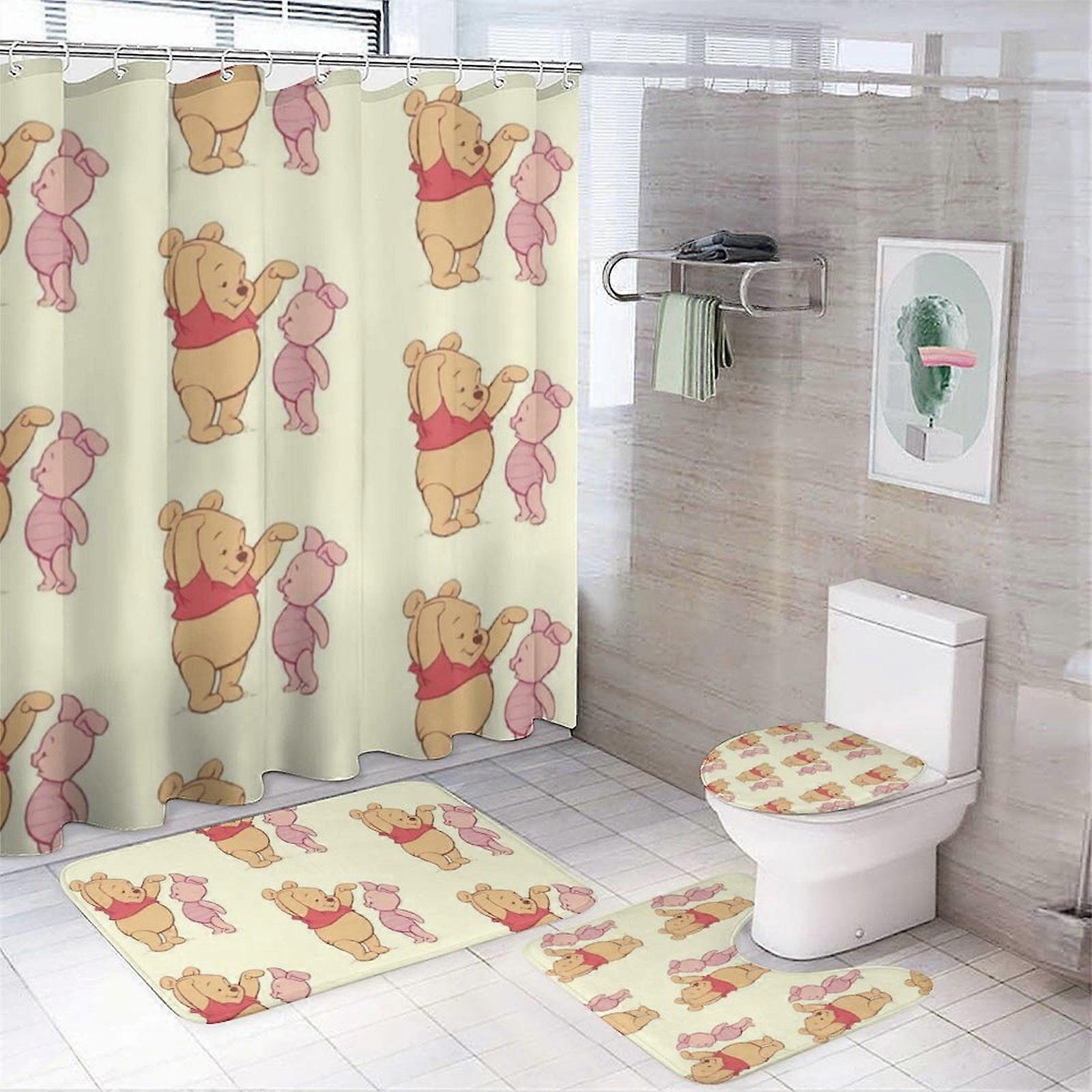 Winnie The Pooh 4 Pc Shower Curtain Set with Non-Slip Rugs, Toilet Cover & Bath Mat, Waterproof 72" x 72", 12 Hooks