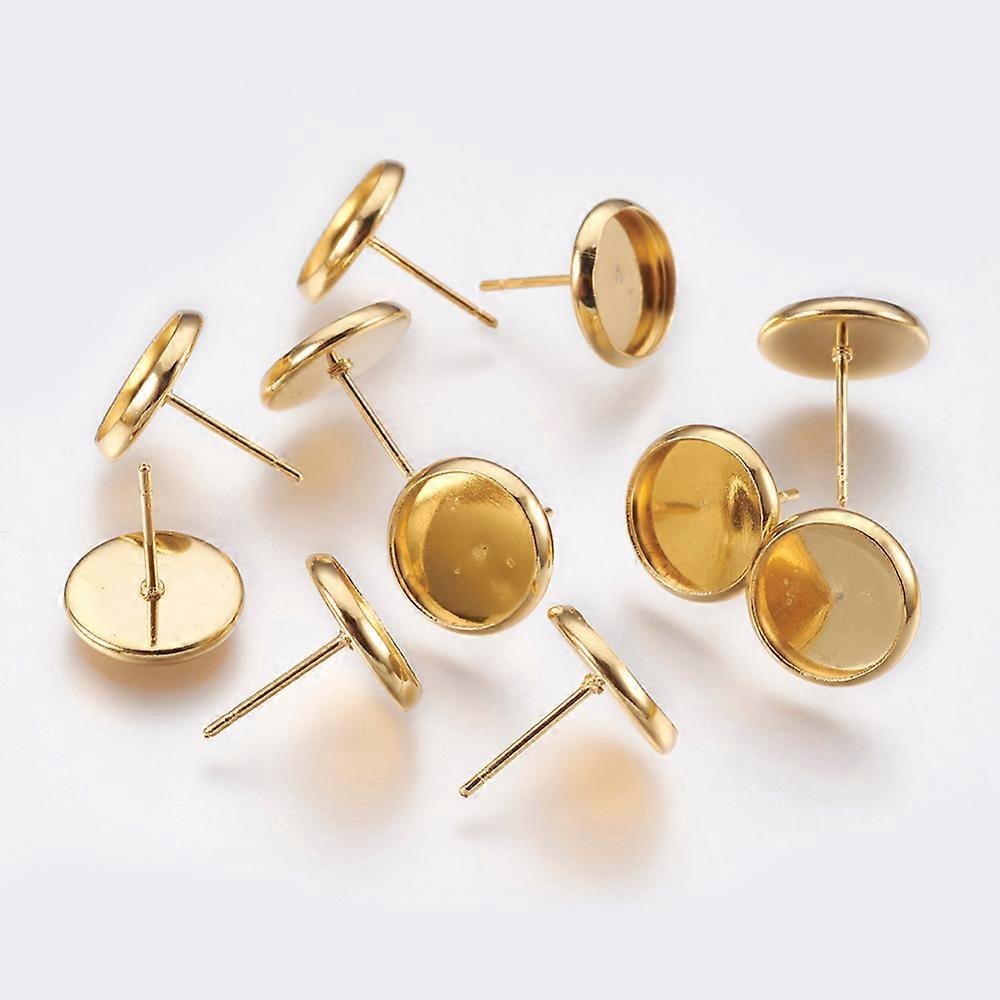 304 Stainless Steel Stud Earring Settings Flat Round Real 24K Gold Plated