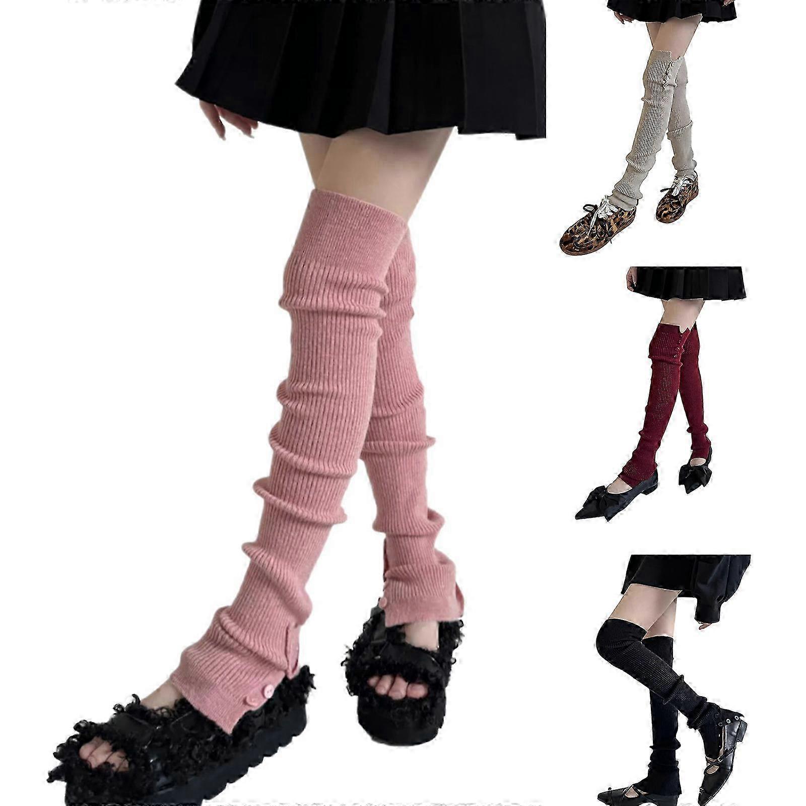 Ballet Styles Buttons Open Split Ribbed Knitted Leg Warmers Solid Color Thigh High Long Socks Stockings for Trendy Women Burgundy