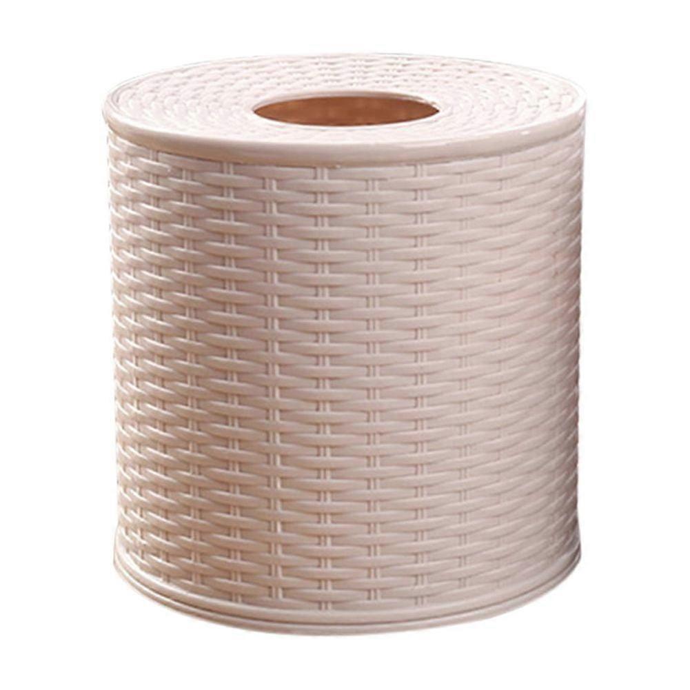 Rattan Tissue Box with Lid, Wicker Toilet Paper Holder, Round White Basket for Bathroom Storage, Compatible with Single Roll & Tissues