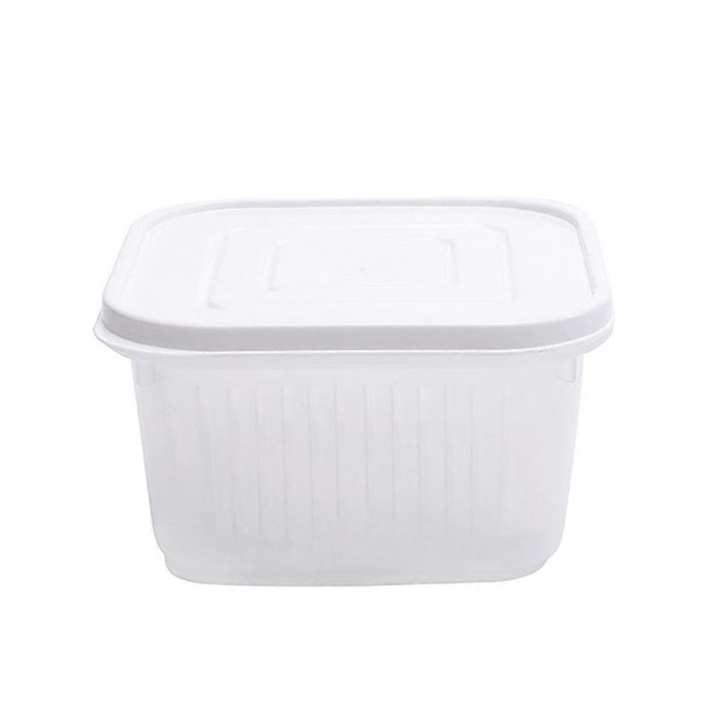Transparent Fridge Storage Box with Lid & Drainer - Compatible with Kitchen, Fruit, Veggie Crisper Container for Home, Restaurant (White)