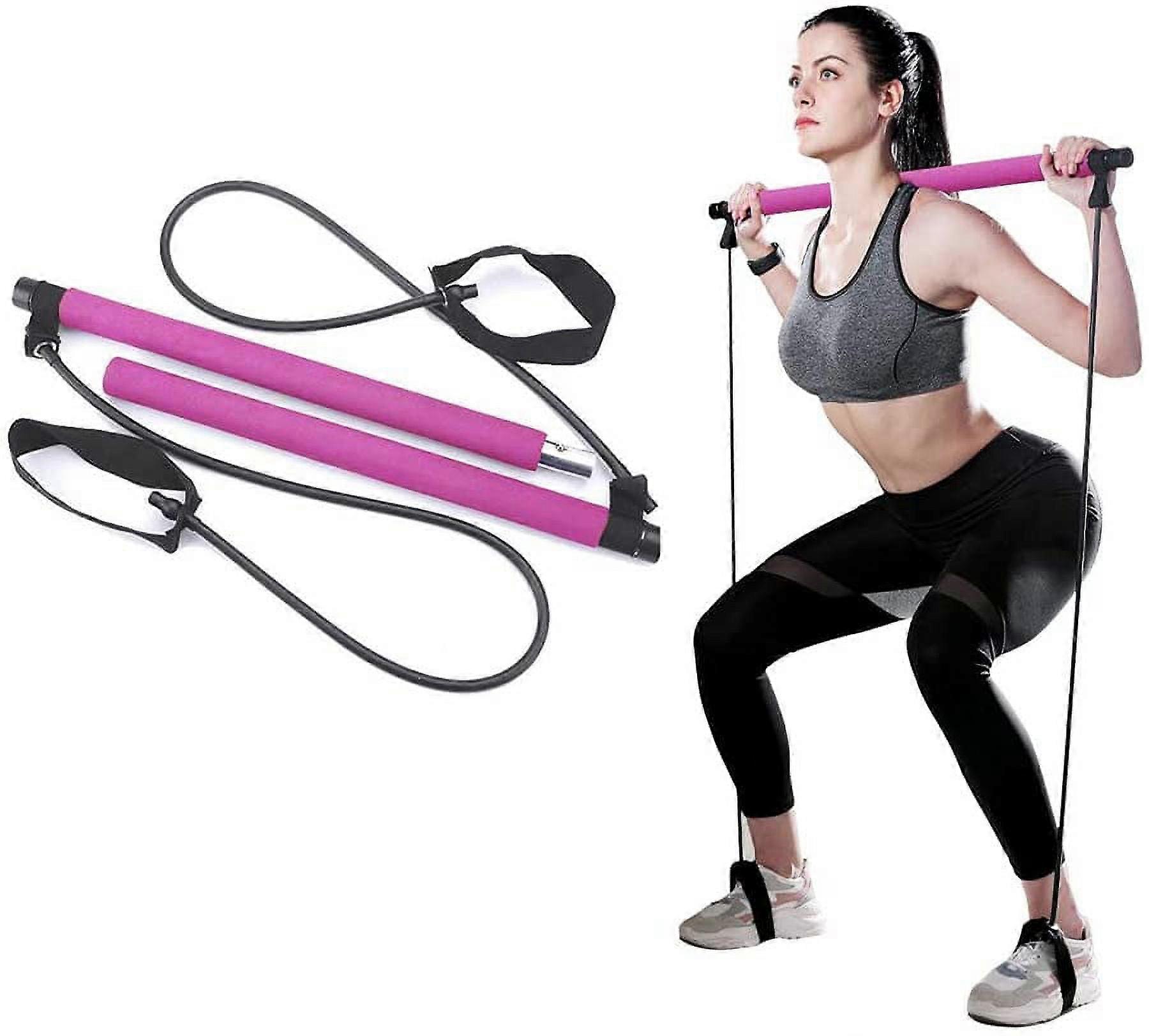 Portable Pilates Bar Stick with Resistance Band Loop Set, Yoga & Fitness Exercise Stick for Booty, Leg Workout (Pink)