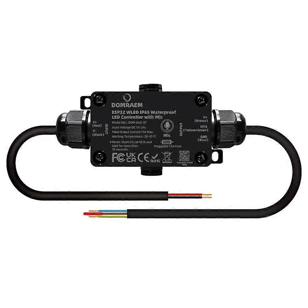 DOMRAEM Waterproof ESP32 WLED Digital LED Mic Controller 15A Fuse RCP WS2811/05etc Alexa/HA/MQTT App Remote RGB IC