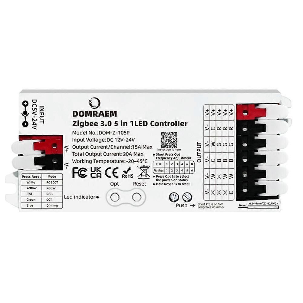 DOMRAEM ZIGBEE3.0 5 in 1 LED Strip Controller DIMMER CCT RGB RGBW RGBCCT for HUxE SmartThings Echo Plus 20A