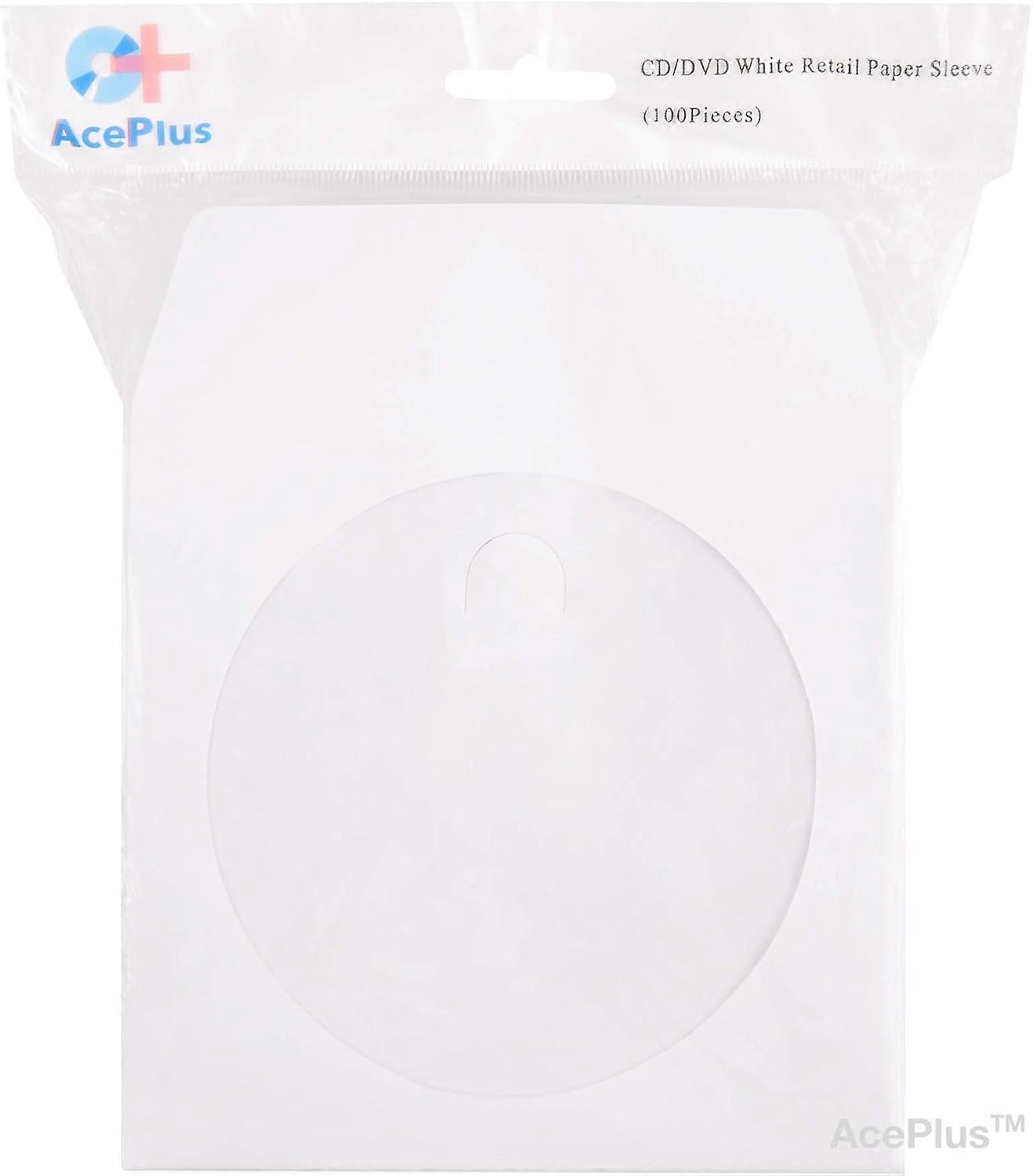 1,000 CD/DVD White Paper Sleeves with Clear Window and Flap, Sturdy 100 gram Weight; 1 Box = 10 packs x 100-pk