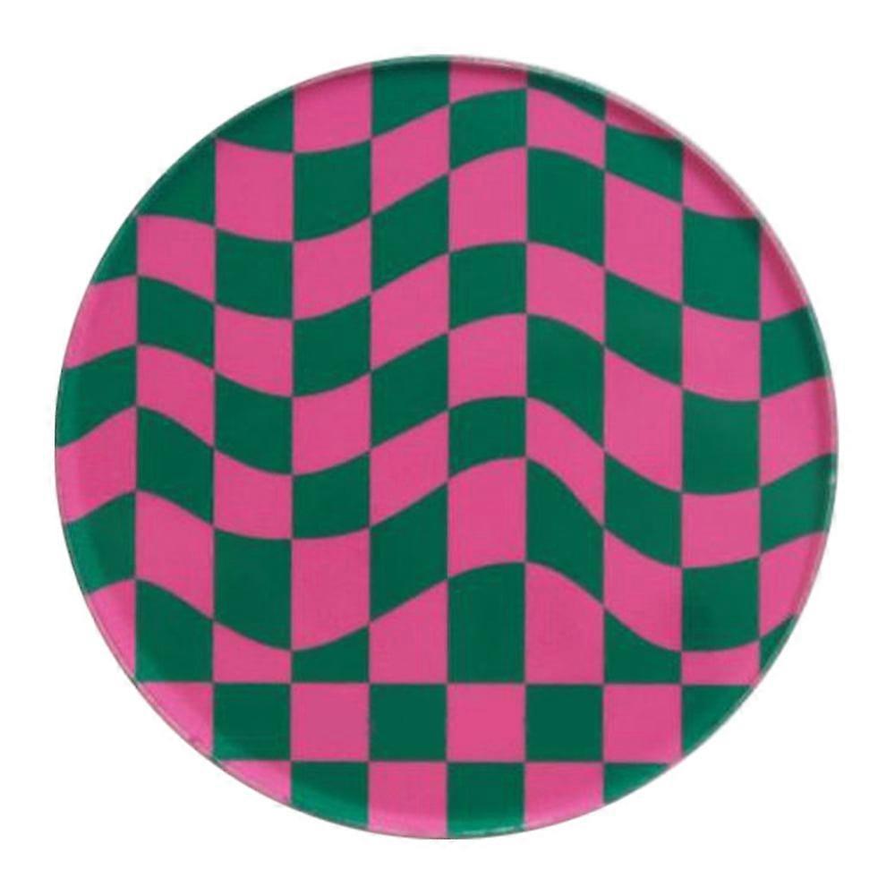 Creative Acrylic Coasters Set of 2, Round Checkerboard Abstract Mosaic Design, Absorbent Cup Mat Pad for Table Bar Desk, Home Decor Gift