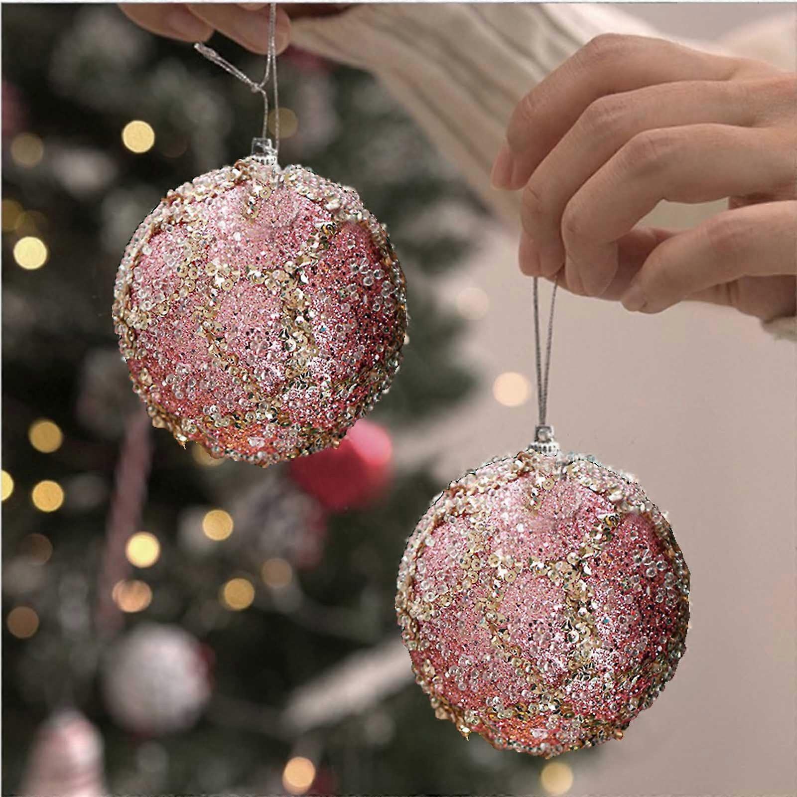 2 Pcs 3.14" Christmas Ball Ornaments, Shatterproof Plastic Pearl Hanging Balls for Tree, Holiday Party Decorations