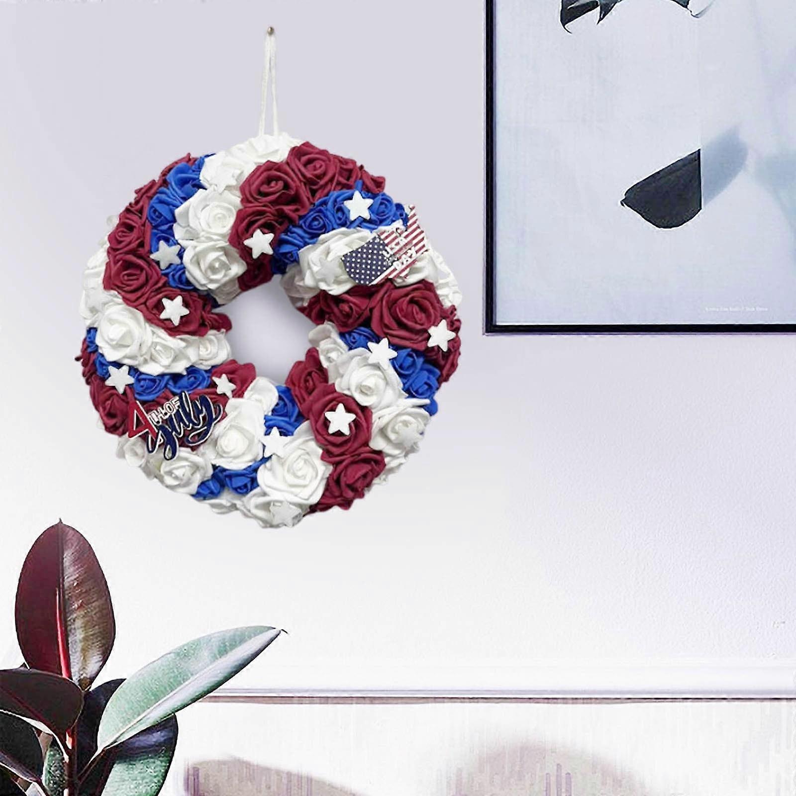 OYIGU Flower Wreath for Independence Day, American Flag Wreath Decoration Compatible with Home Walls, Porch, Outdoor & Indoor Holiday Supplies