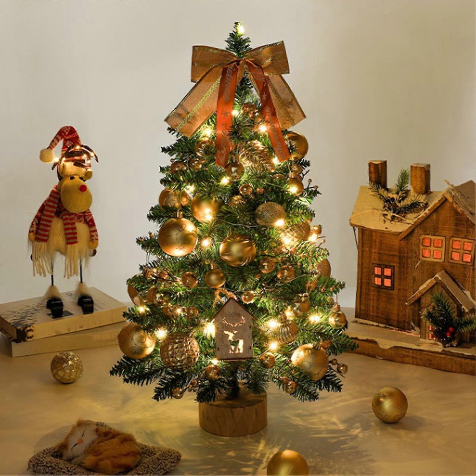 SUSUchens Mini Christmas Tree with LED Lights, Hanging Ornaments, DIY Desktop Xmas Decor, Battery Operated Artificial Tree Style A, Size S