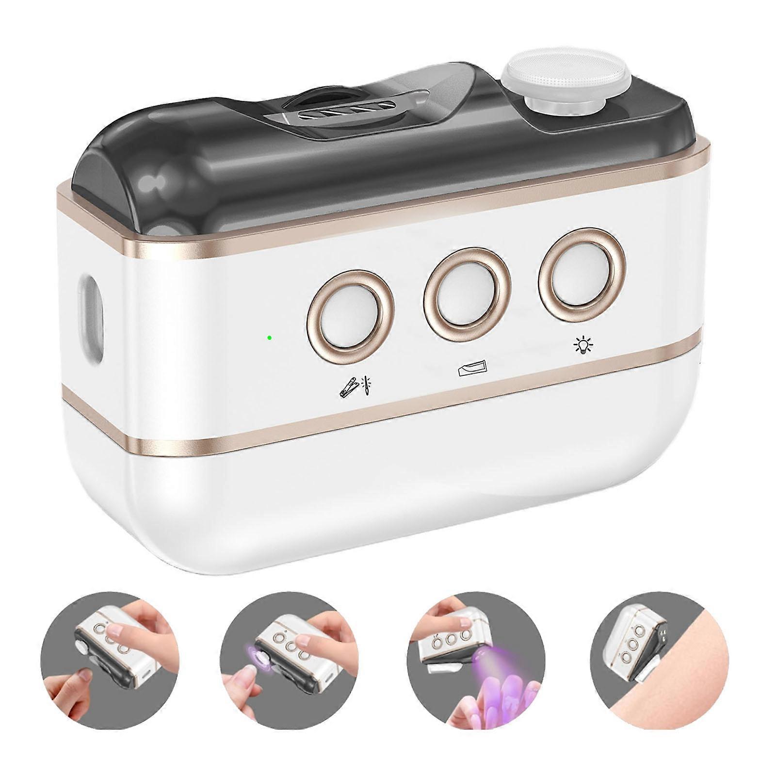 Features: Multi functional design: 4-in-1 nails polish machine integrates functions such as electric nails clippers and grinders, meeting daily nails art needs. Safe and efficient polishing: Sturdy and durability, ensuring safety, for daily home care and professional nails salons. Quiet operate : Equipped with low-noise motor, it will not disturb family rest even when used at night, providing comfortable experience. Portable and light in weight : Small and portable, convenient to carry around, for travel, business trips and other scenarios. Suitable for family use: Meet the needs of both adults and children, with rounded corner design to prevent accidental injuries. Specifications: Component: ABS Size: approx. 91.71x74x34.38mm Battery capacity: 800mAh Input: DC5V Charging time: 1.5 hours Power: ≤ 5W Charging : Type C Working voltages: 3.7V Package Includes: 1Pc 4 in 1 Multifunctional Electric Nails Trimmer 1Pc USB Charging Cable 4Pcs Grinding Head 1Pc User Maunal note: Please allow 1-2cm errors due to manual measurement. Please allow for slight color differences due to different display resolution.