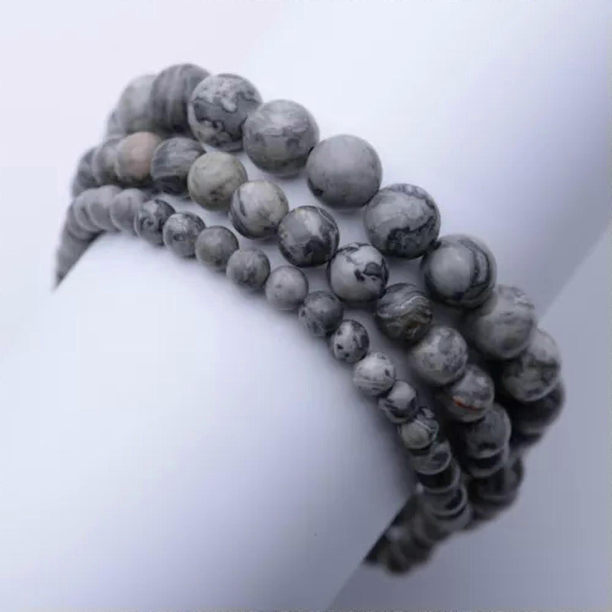 RSAMD 4~8mm Genuine Mixed Natural Gemstone Round Beads Stretchy Bracelet Healing Reiki-6mm-Map Stone