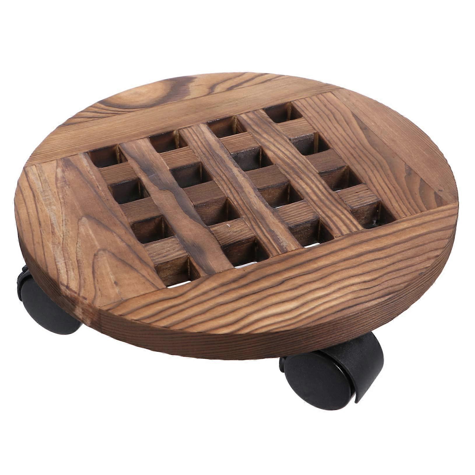 Wooden Plant Pot Tray with Wheels, Round Removable Base for Indoor Outdoor Flower Display