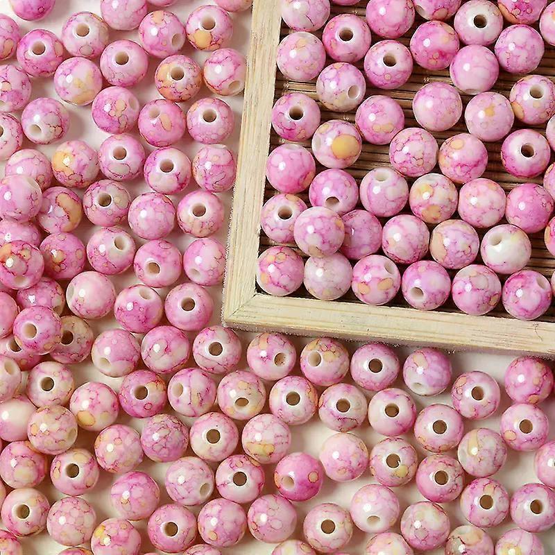 NEW DIY 50pcs 8mm Double Color Beads & Bead Assortments Acrylic Round Pearl Loose Beads Jewelry Making Craft