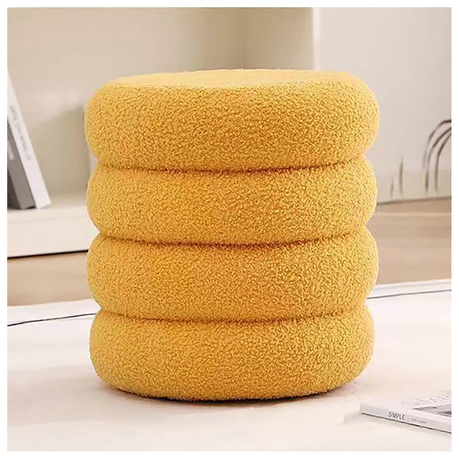 13 Inch Round Ottoman Footstool with Lambsfaux wool Fabric and Sponge Filling for Living Room or Bedroom (Yellow)