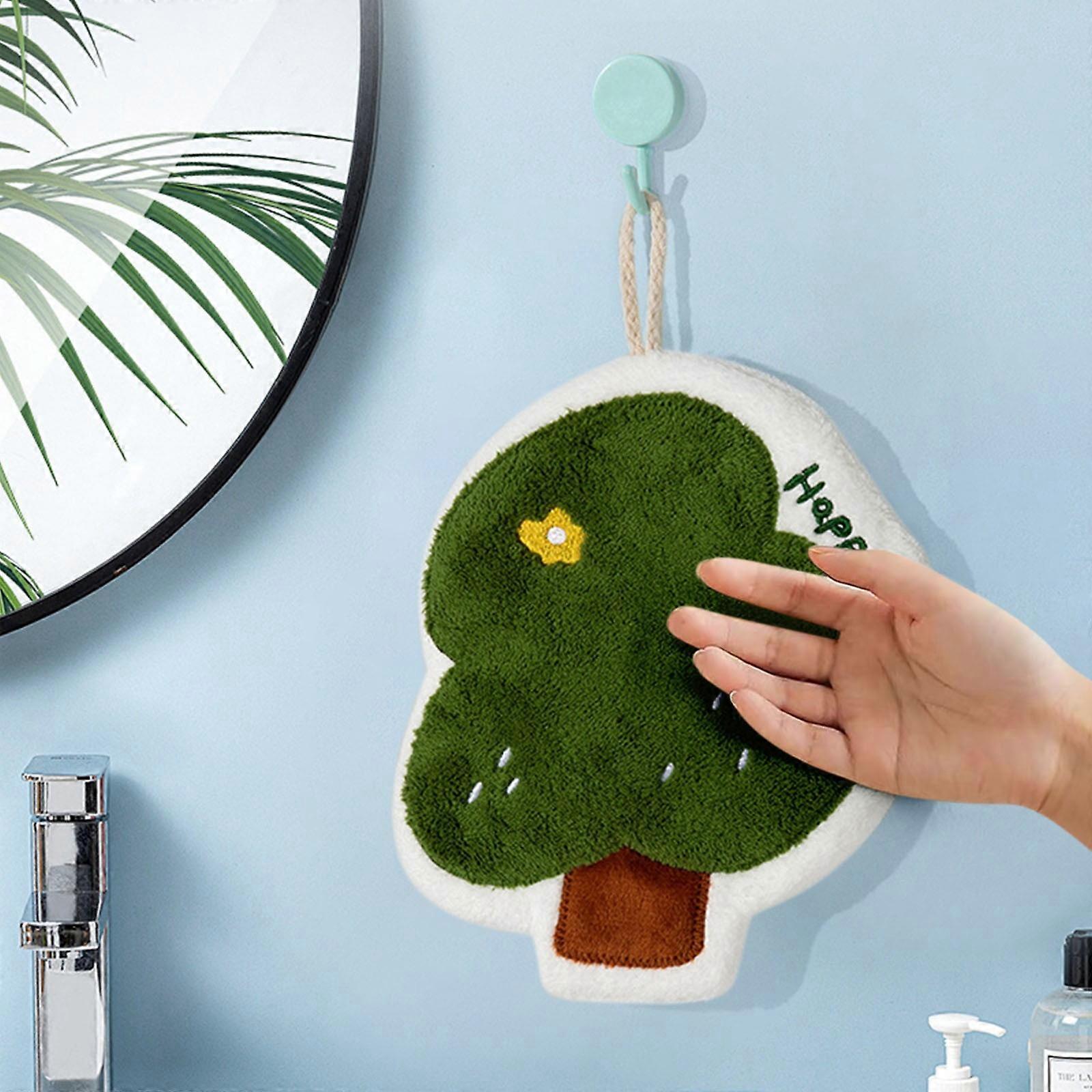 Super Cute Kawaii Hangable Round Face Animal Hand Towel, Thick Coral Fleece, Dry Hands Instantly, Kitchen Cleaning Cloth Compatible with Home Use