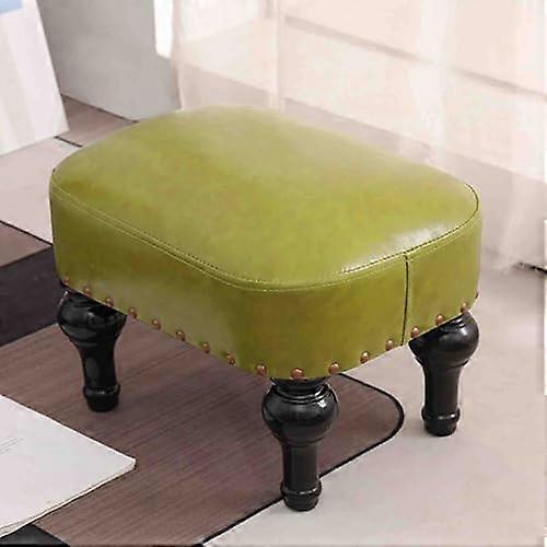 Vintage Leather Foot Stool with Wooden Frame, Upholstered Small Ottoman for Living Room Sofa Footrest