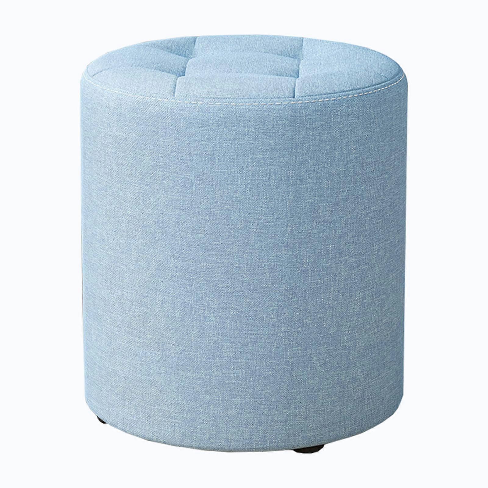 Brown Round Foot Stool with Cotton Thread Upholstery for Bedroom & Living Room Shoe Changing