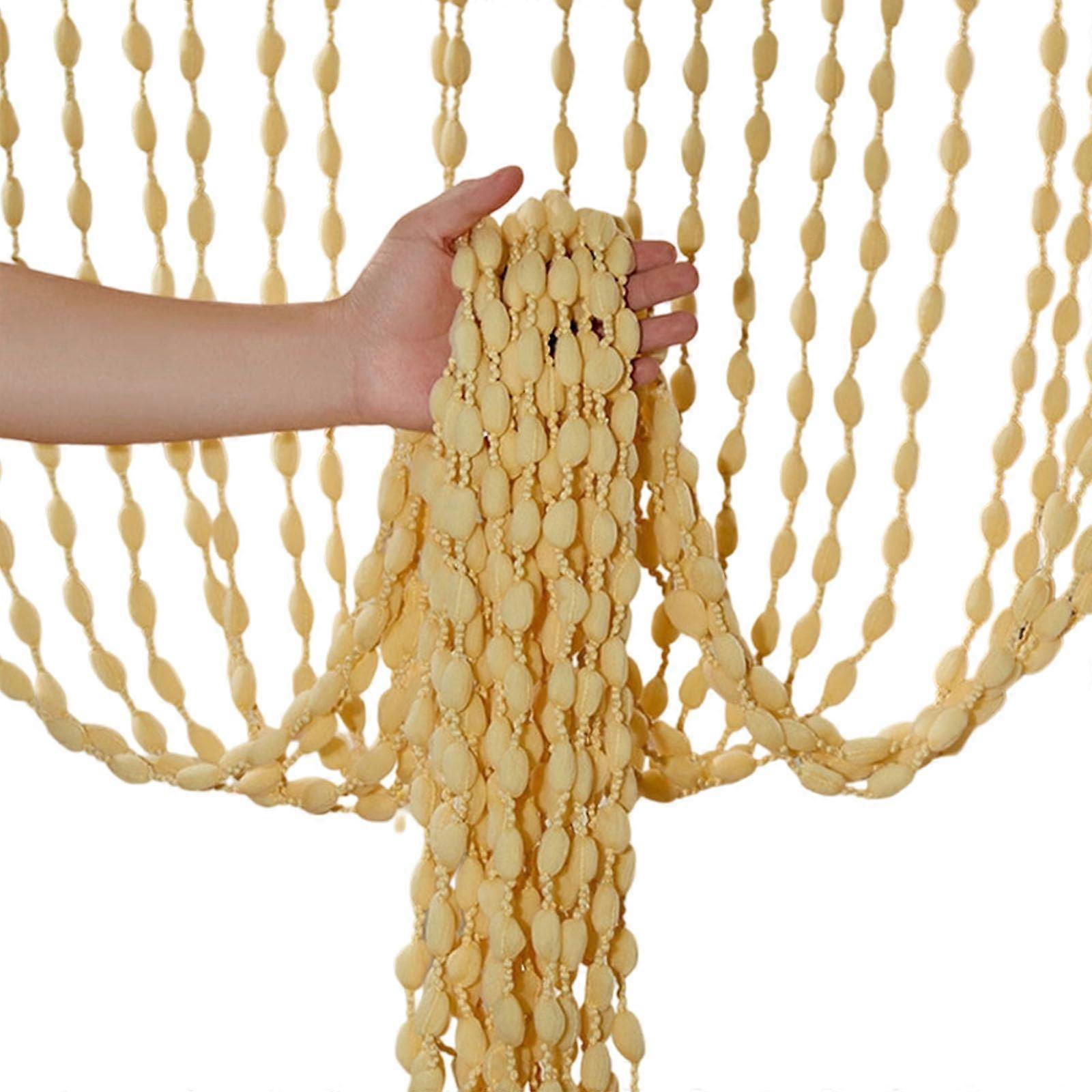 Polyester Beaded Doorway Curtain with Tassel Fringe for Room Divider Party Decor Adjustable Length