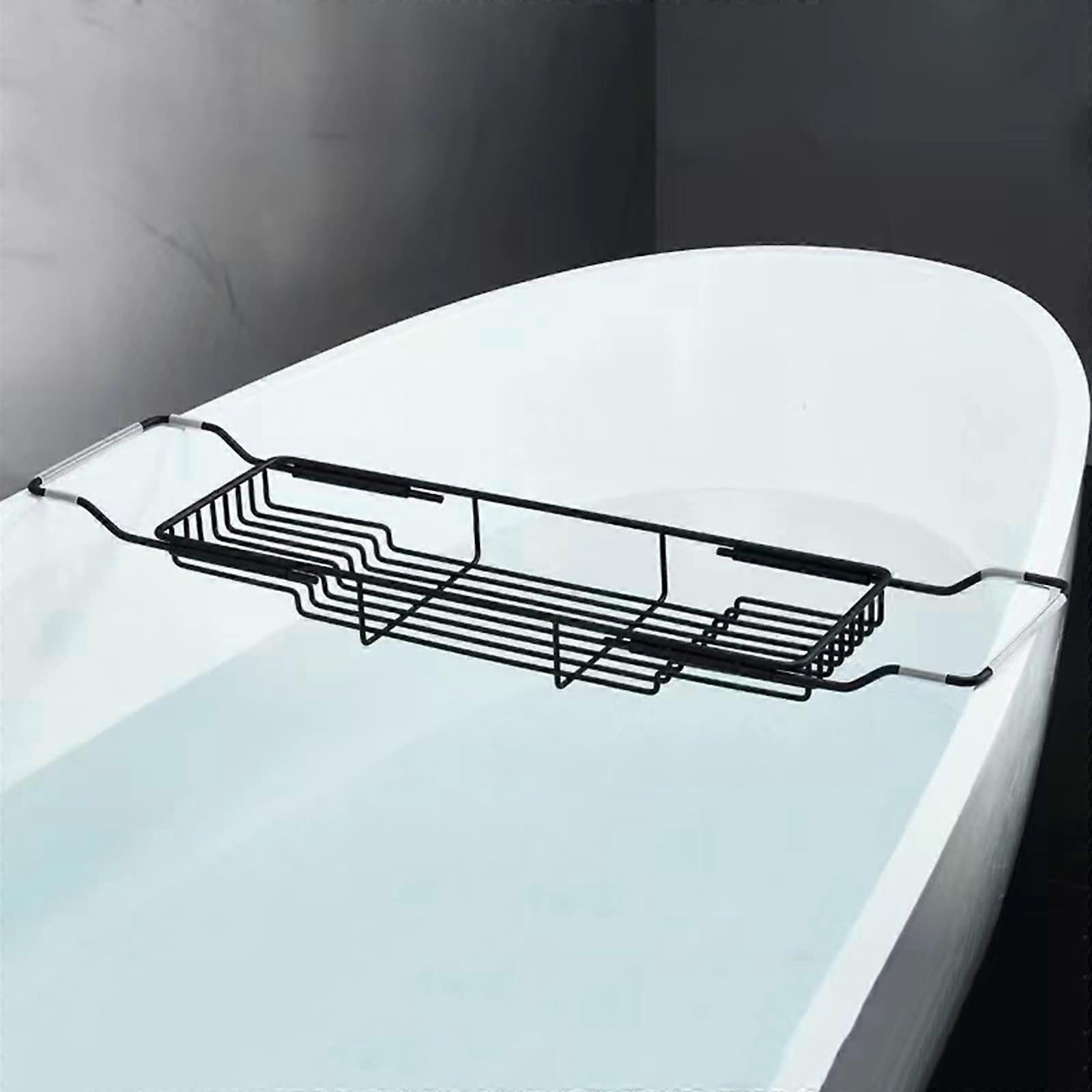 Bathtub Tray Stainless Steel Expandable Caddy Rack with Non‑Slip Grip for Most Tubs, Gold, Set of 2 (Black 1)