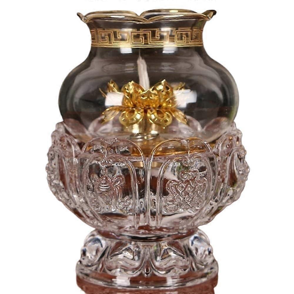 Buddhist Butter Lamp Glass Oil Light 13.5cm for Temple Worship and Meditation Decor