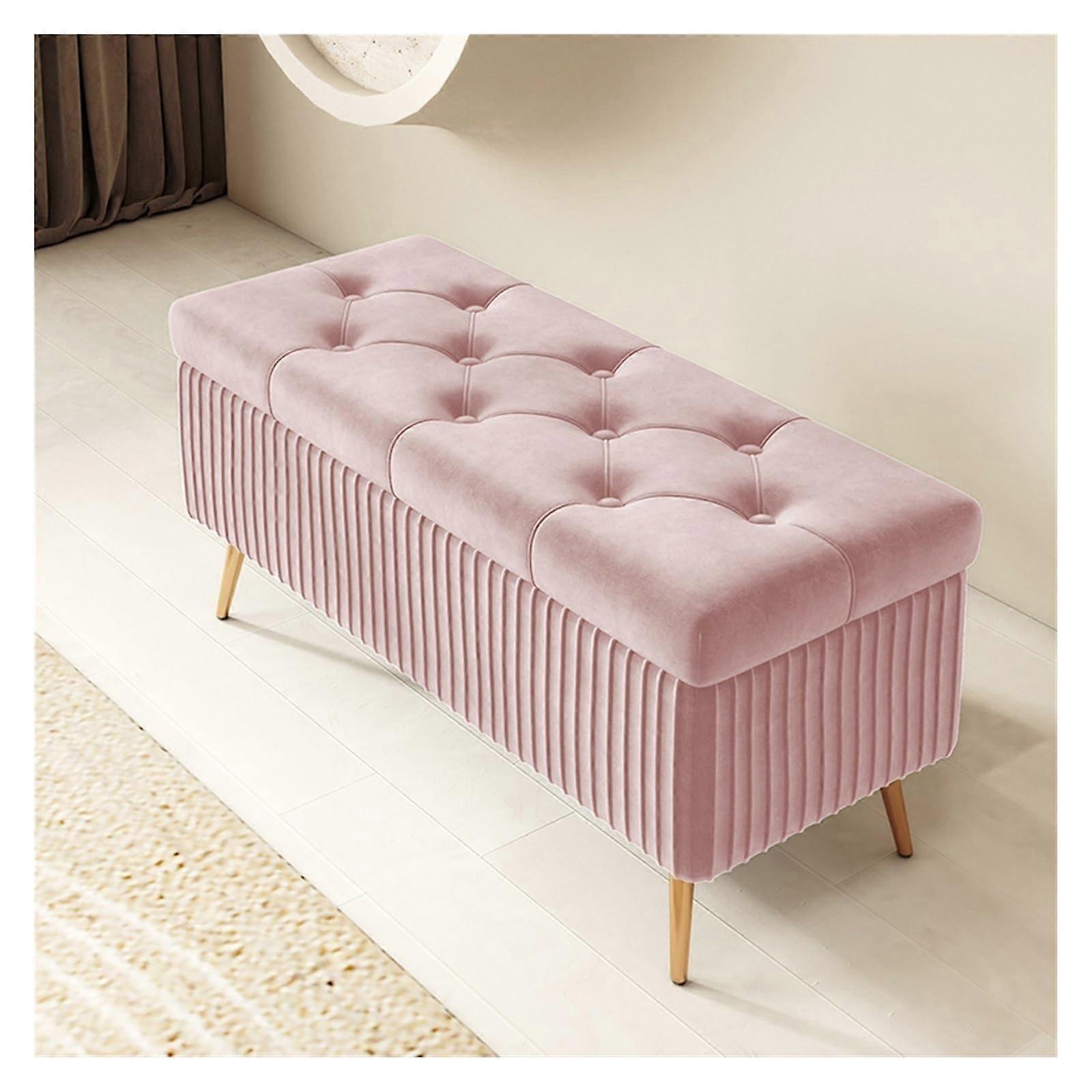 Bedroom Storage Bench with Cushion for End of Bed or Entryway, Pink 120x40x45cm