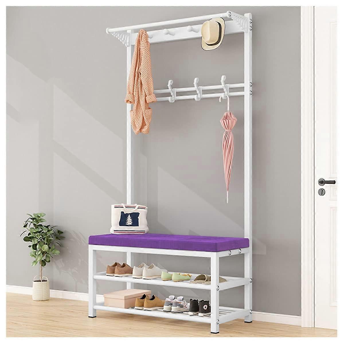 Coat Rack with Shoe Storage and Bench for Entryway Hallway, White Purple, 100x33x170cm