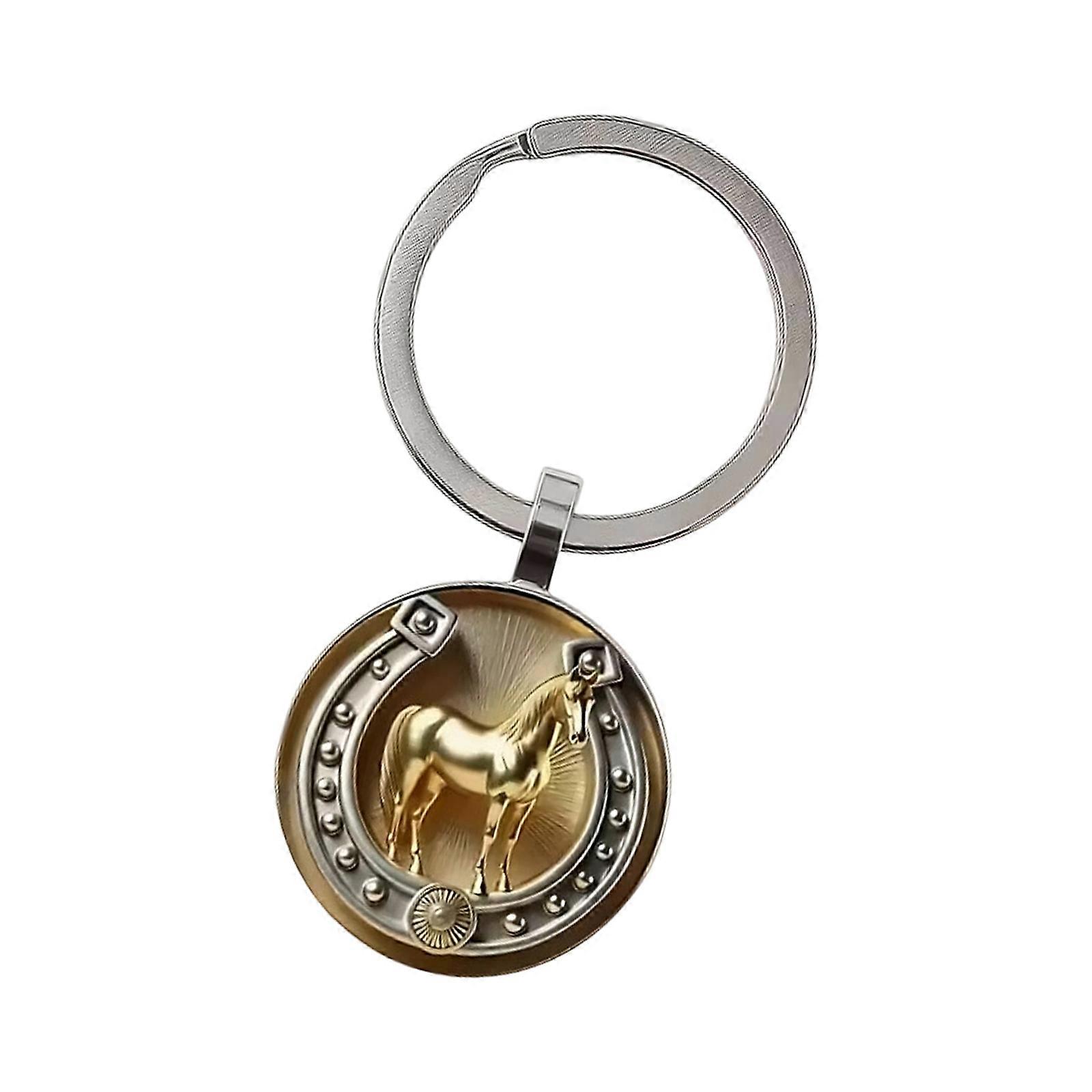 Gold Finished Horseshoe Keychain Including Detailed Embossing Sturdy Alloy Made For Pendant Or Bag Charm Representing Luck Multicolor