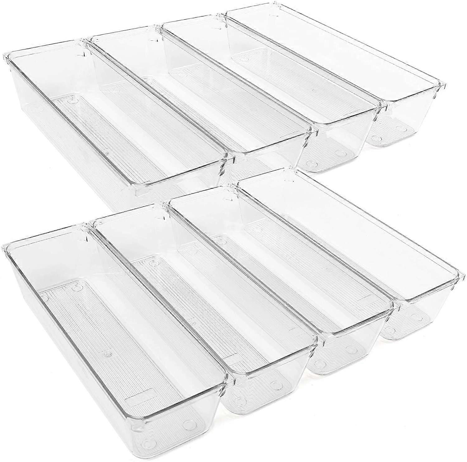 8Pcs Clear Plastic Drawer Organizers Storage Tray for Utensil Silverware Kitchen