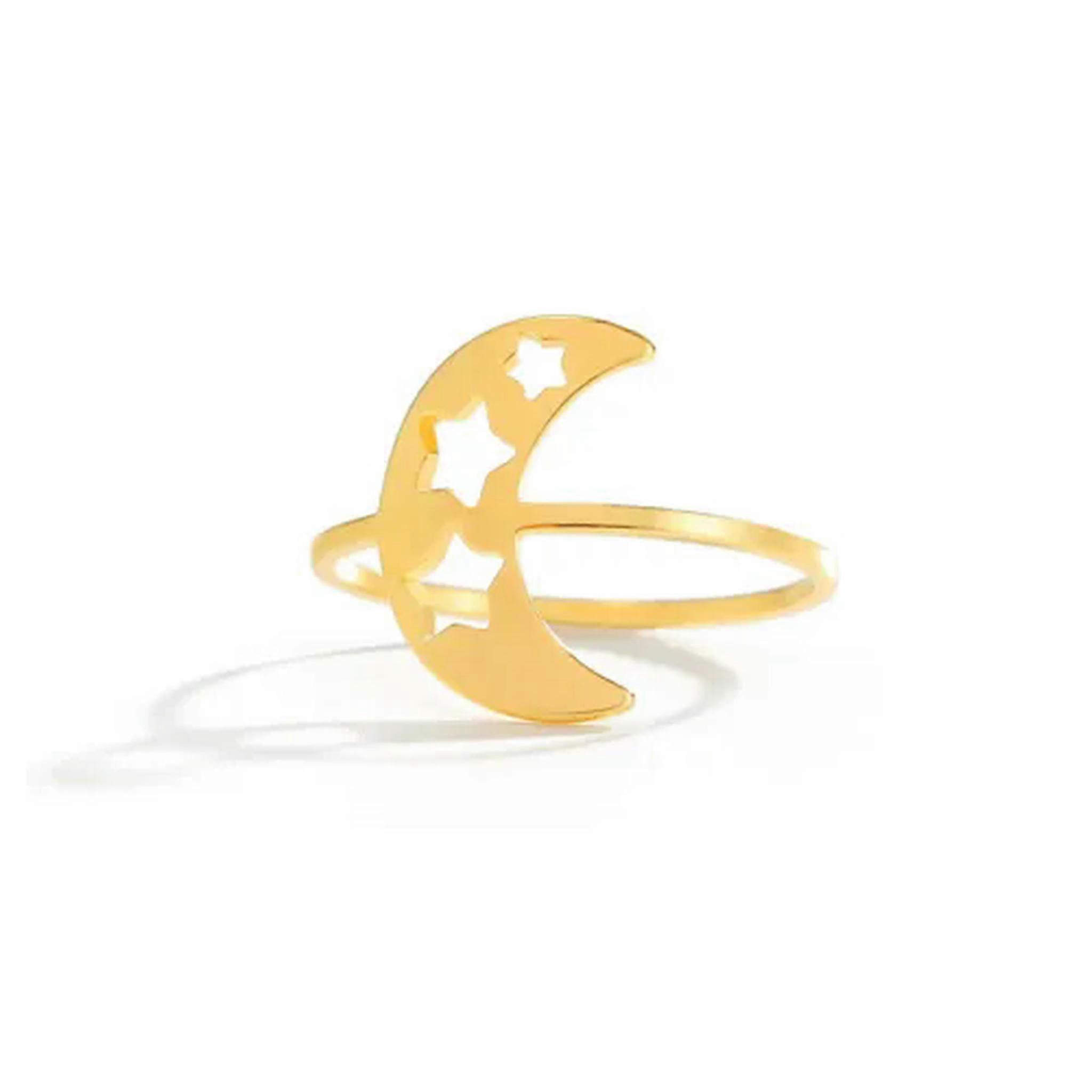 RSAMD Stars Crescent Moon Ring Stainless Steel Women Bohemian Band Finger Ring Jewelry-9-Gold