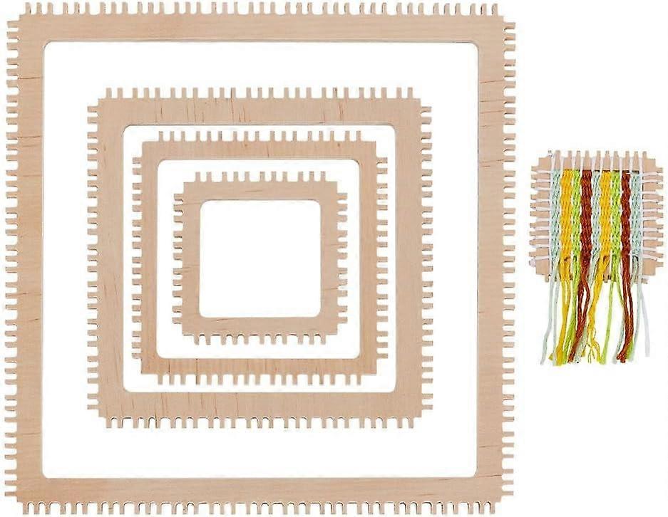 4Pcs 4 Sizes Wood Weaving Loom Kit, 2/3/4/6 Inch, Square Knitting Loom Tools, Notched Weaving Loom Basket for Adult Beginners & Weaving Lovers, DIY