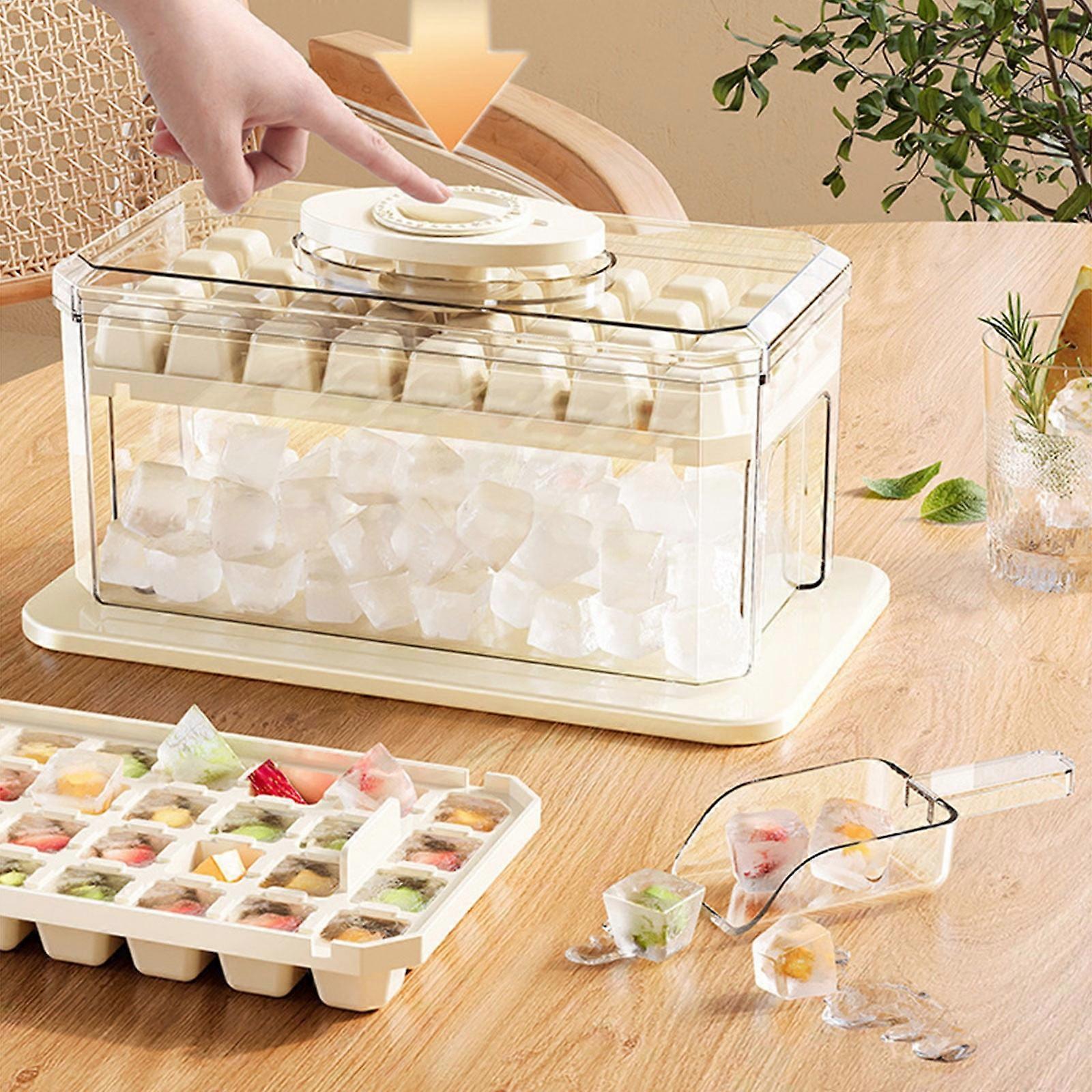64-Lattice Press Ice Tray Large-capacity Ice Cubes Mould Refrigerator Ice Making Easy Demoulding with Lid Ice Box with Ice Box Ice Shovel